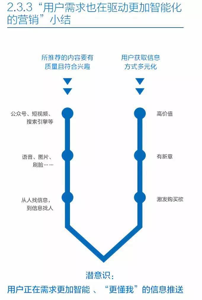 在AI賦能營銷的時代,如何在充分尊重人性的前提下,匹配用戶的需求,則成爲營銷的導向。通過AI,我們能更精確(què)地依靠目标人群的知識圖譜實現精準匹配,用戶不僅更加智能地搜索到自己想要的信息,還能夠接收到AI技術根據用戶需求而主動推薦的信息。從(cóng)而實現“從(cóng)人找信息,到信息找人”,這也是爲什麽《白皮書》中認爲的,“無智能推薦的資訊都是信息噪音”。