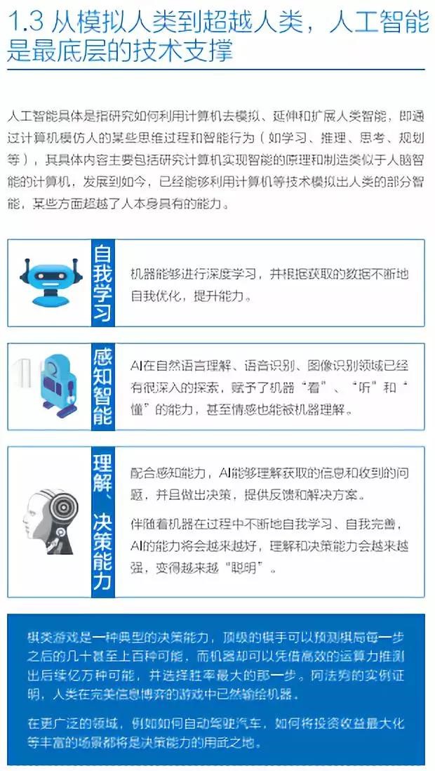 AI是個如此寬泛的概念,可以用來描述很多東西,從手機計算機到無人駕駛汽車(chē),所以人們會疑惑到底如何去定義AI。關於(yú)AI的範疇,《白皮書》中有十分詳盡的解釋:“具體是指如何利用計算機去模拟、延伸和擴展人類智能,即通過計算機模仿人的某些思維過程和智能行爲(如學習、推理、思考、規劃等),其具體内容主要包括計算機實現智能的原理和制造類似於(yú)人類智能的計算機。”