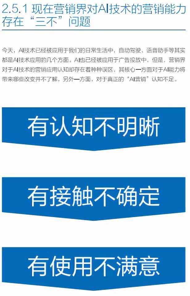 2018年8月23日,由百度攜手知萌咨詢聯合發布的國内首本《AI賦能營銷白皮書》(以下簡稱“白皮書”),不僅完整地勾勒瞭(le)AI 營銷的前世今生,而且第一次系統地闡述瞭(le)當下營銷人對於(yú)AI營銷的種種誤區、AI在營銷中所扮演的角色和價值,以及未來AI将如何助力營銷的變革。